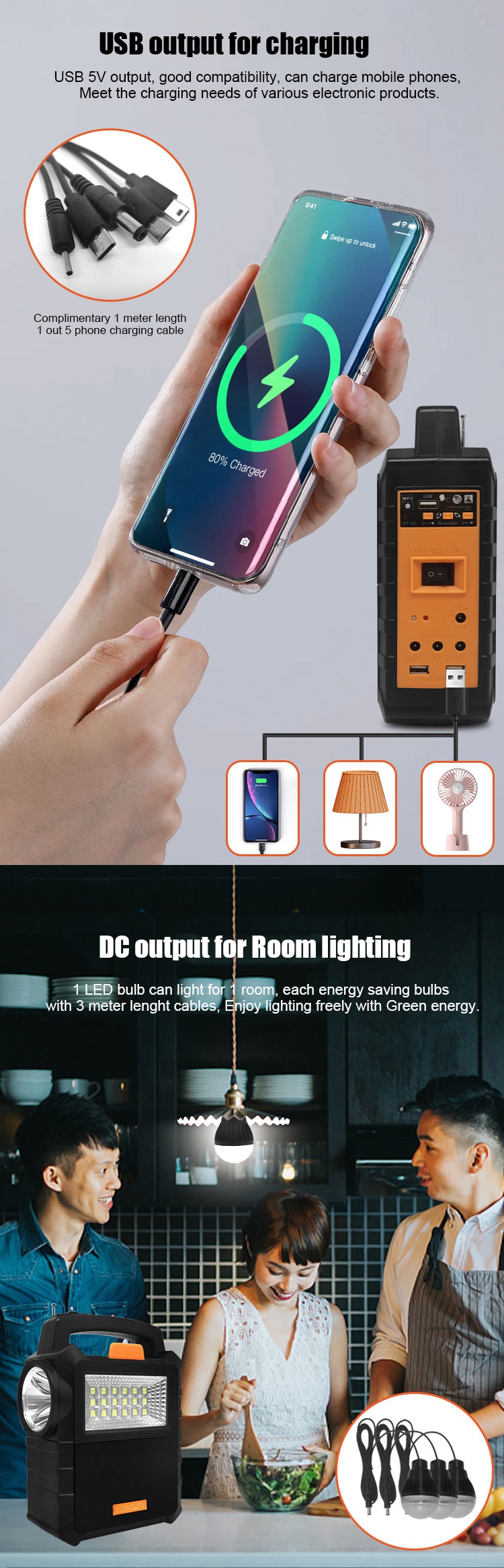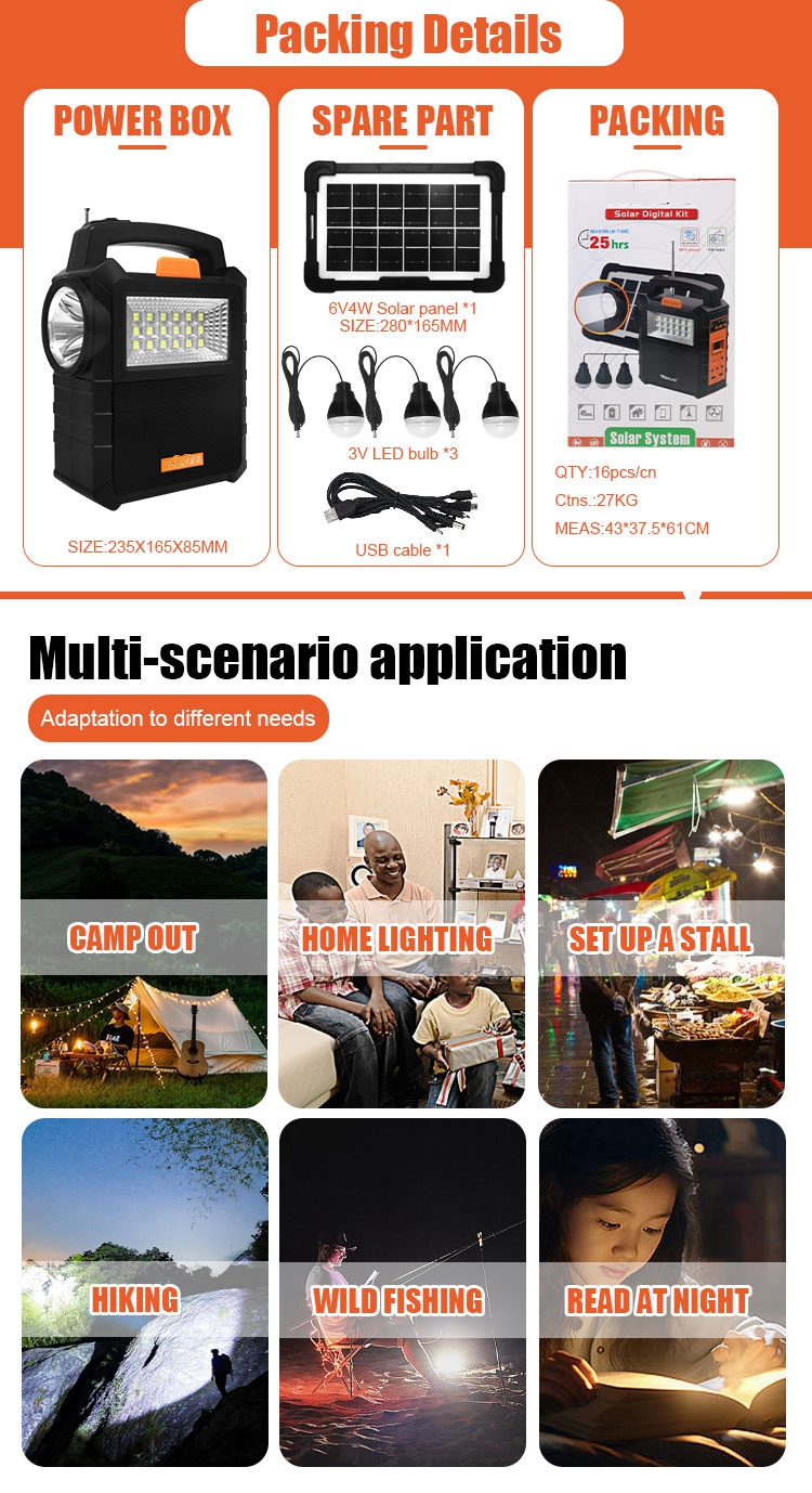 LED Lighting Mini Solar Energy Kits DC Output Solar Charger Portable Multifunction Solar Lighting System For Camping