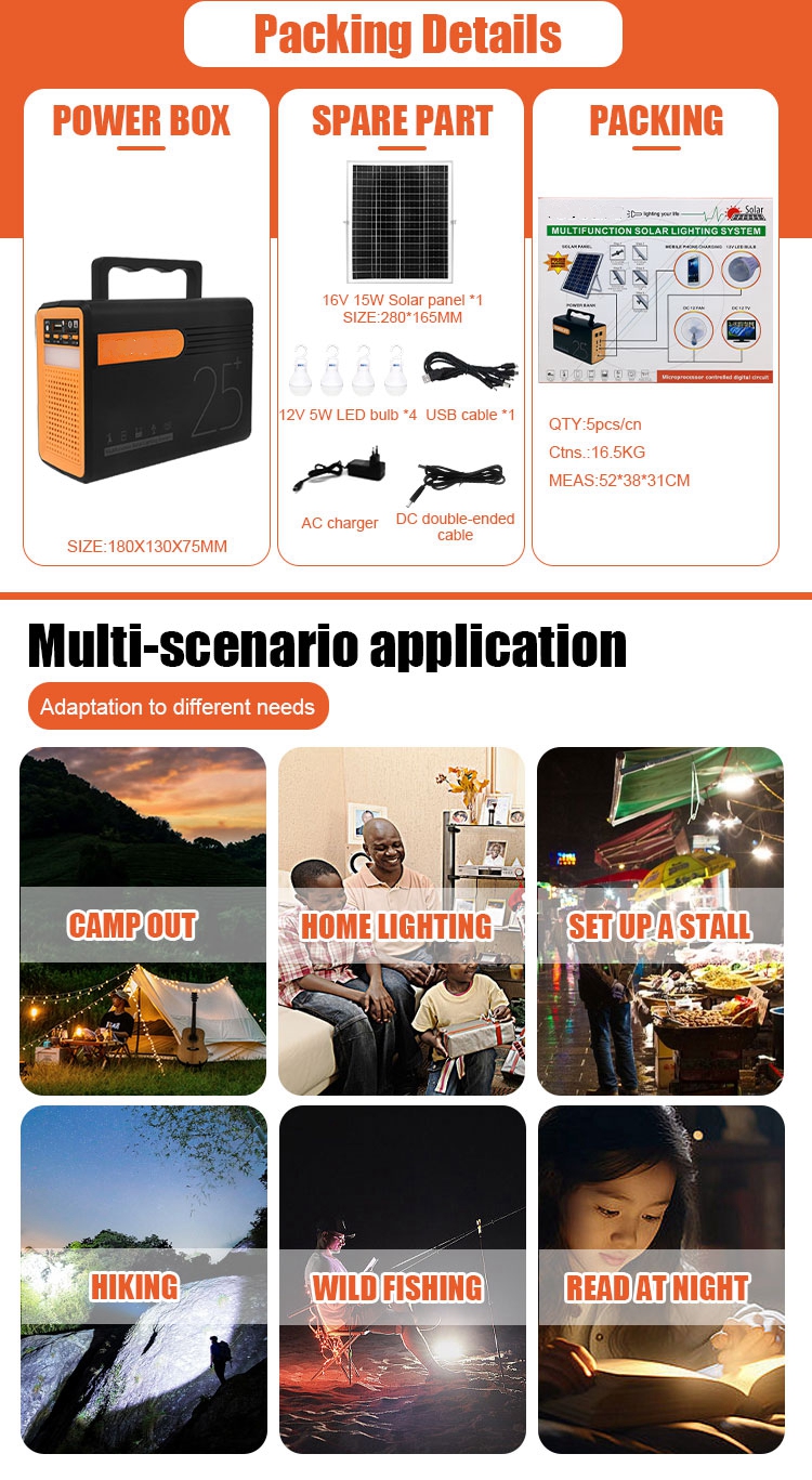 LED Lighting Mini Solar Energy Kits DC Output Solar Charger Portable Multifunction Solar Lighting System For Camping