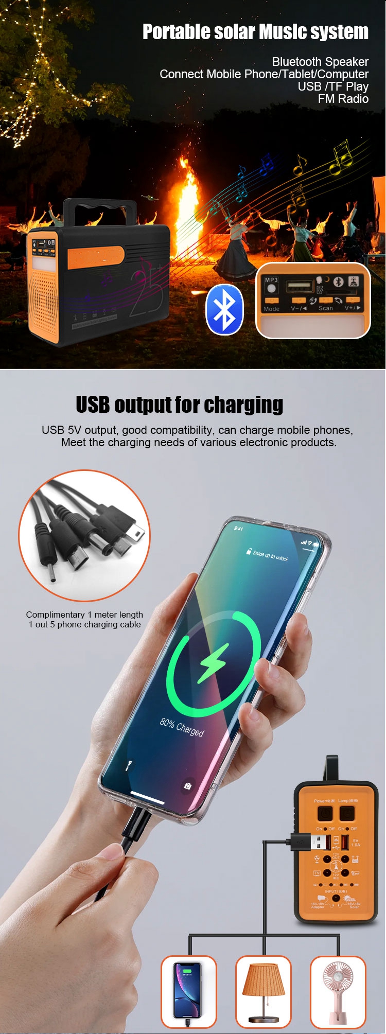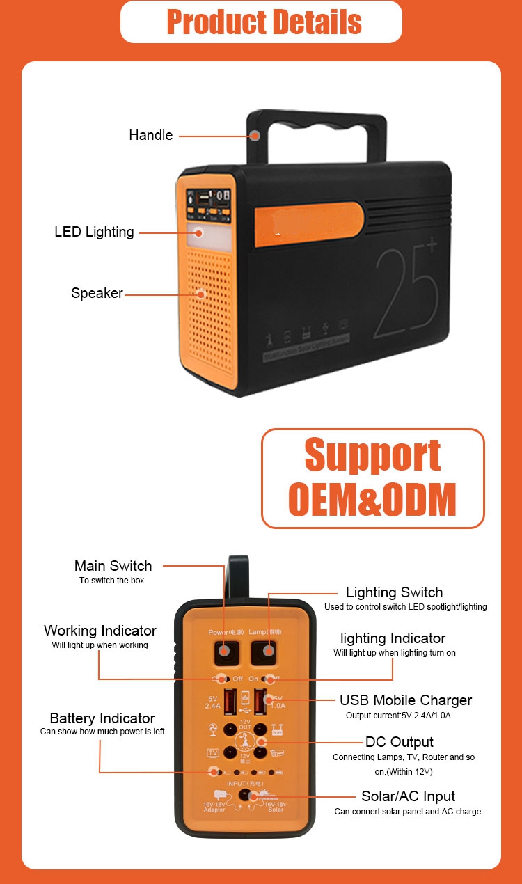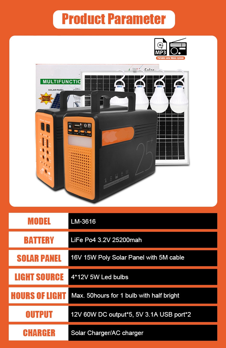 / Macure Solar Energy Light Outdoor 80Wh Storage Emergency Solar Station 12V Solar Lighting Kits With Bluetooth Mp3 Radio