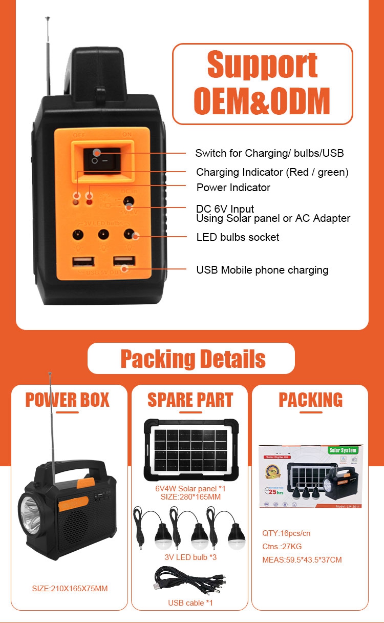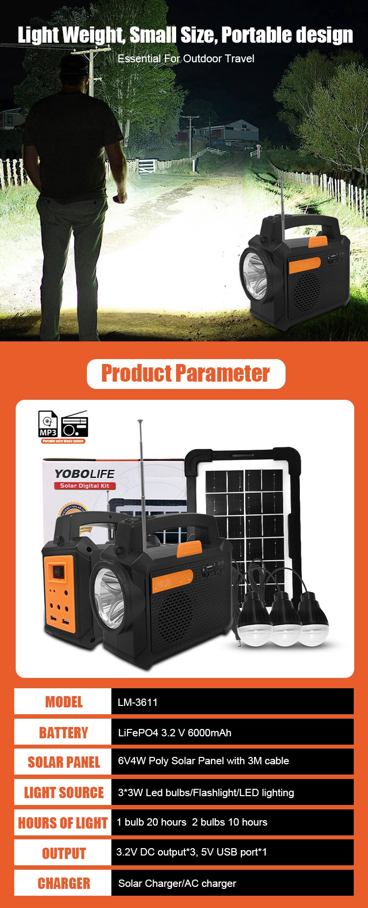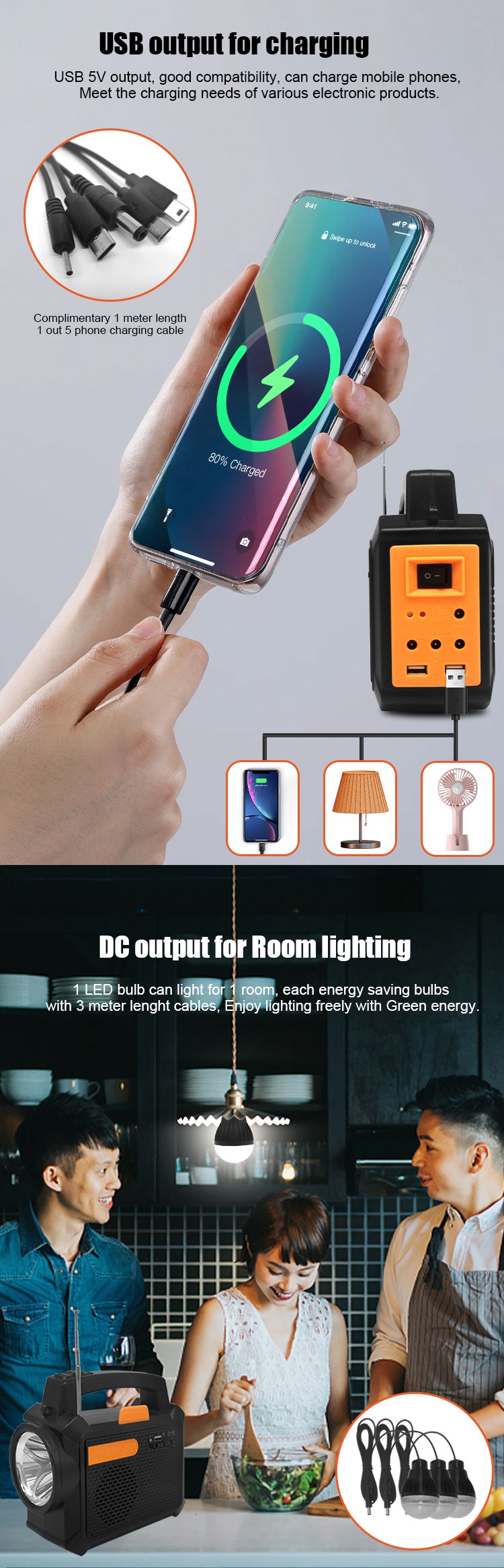 LED Lighting Mini Solar Energy Kits DC Output Solar Charger Portable Multifunction Solar Lighting System For Camping