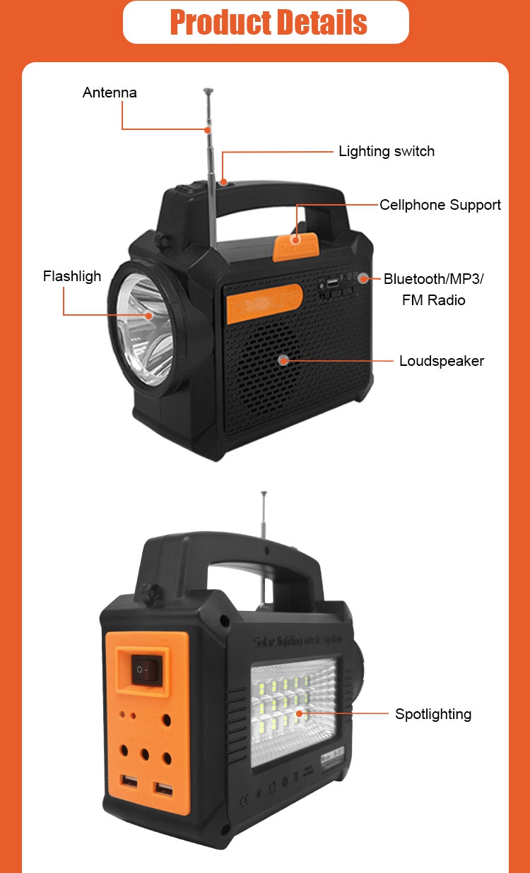 Macure Solar Energy Light Outdoor 80Wh Storage Emergency Solar Station 12V Solar Lighting Kits With Bluetooth Mp3 Radio